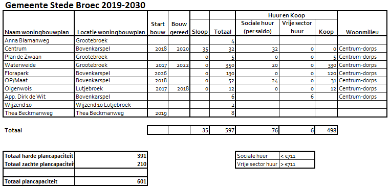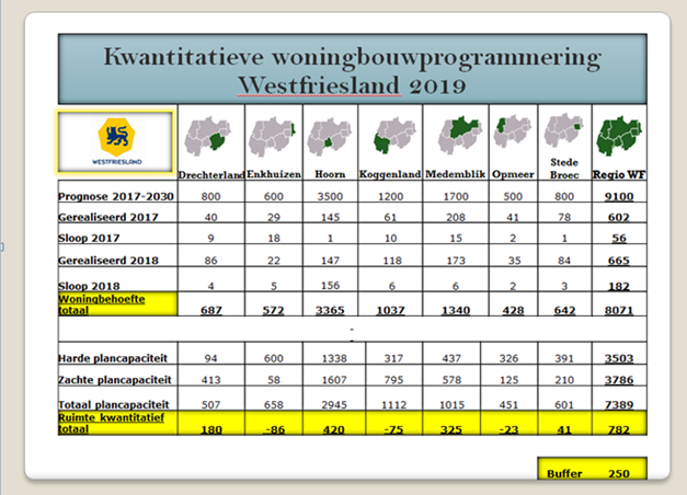 Tabellen te vinden in nieuwe woningbouwprogrammering Archeologie Westfriese Gemeenten (AWF) 2019
