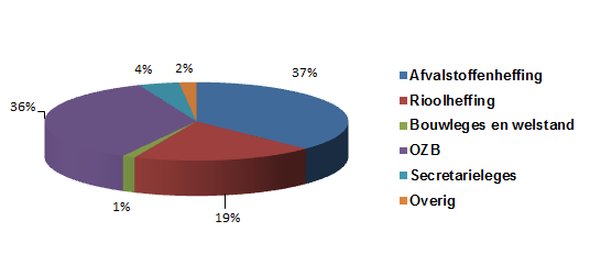 Het totaal aan belastingen en heffingen bedraagt circa € 8,4 miljoen. Onderstaande grafiek laat de verdeling van de opbrengsten uit de belastingen en heffingen voor 2018 zien.